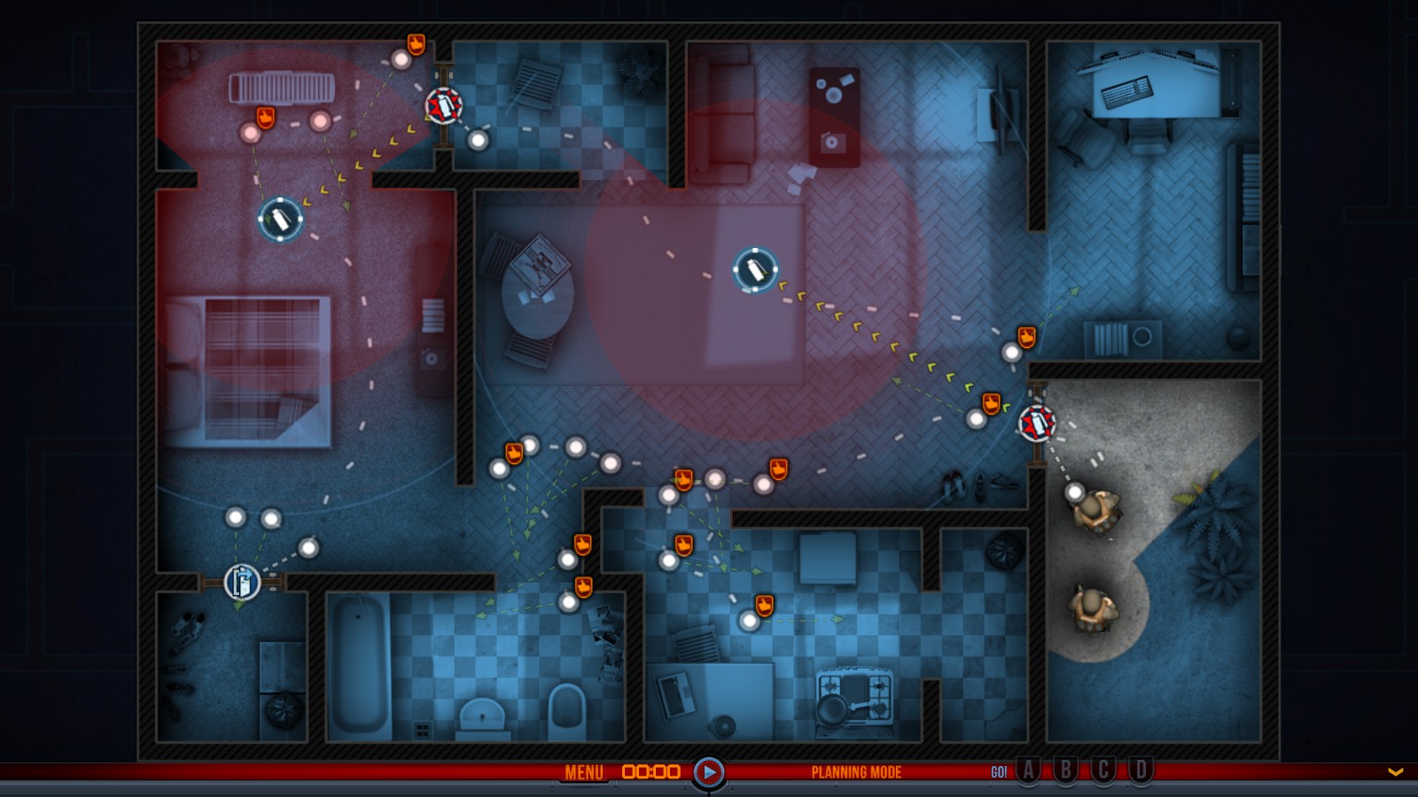 Gameplay wise, it’s like a top down version of SWAT 3 or 4 with the planning mode from the earlier Rainbow Six games thrown in. You can play the game entirely in real time mode or meticulously plan out your entire game plan before hitting that big red “Go” button and kick down the door. If you run into an “Oh, snap!” moment, don’t worry, you can pause the game at any time to react to the situation.